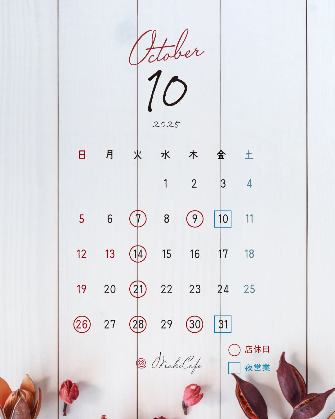 夜ノマキカフェは10日(金)と31日(金)を予定しています。